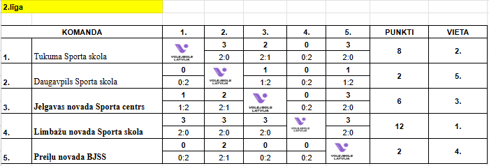 | 17:00 | Tukuma Sporta skola | VS | Jelgavas novada Sporta centrs | 2:1 | 16:25; 25:14; 15:10 |